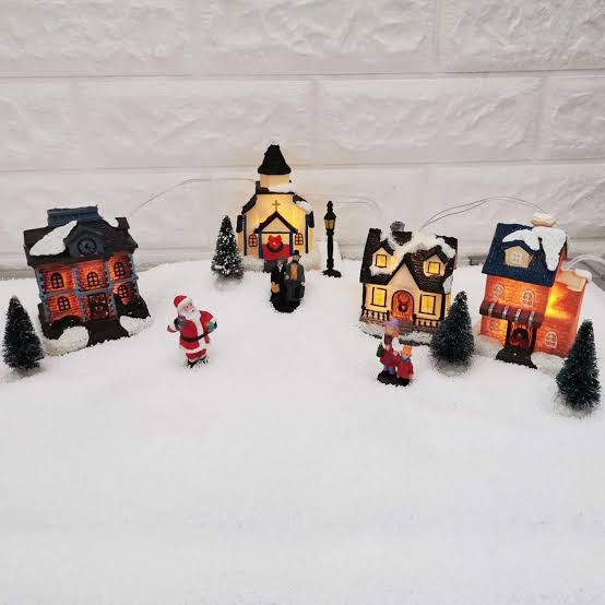 ماکت خانه و کلبه های برفی چراغدار کریسمس