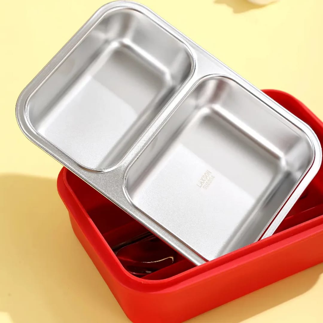 این مدل ظرف غذا دو بخشی میباشد و به همراه قاشق و چاپ استیک ارائه شده و به صورت تفکیکی میباشد و حین جا به جایی غذا و مواد خوراکی باهم مخلوط نمیشوند و همچنین به صورت استیل و پلاستیک میتوانید استفاده کنید. جهت گرم کردن غذا هم میتوانید از مایکروویو استفاده کنید و هم میتوانید ظرف استیل را خارج نموده زیر ظرف استیل را آب جوش ریخته سپس درب ظرف را ببندید و منتظر بمانید تا غذای شما گرم شود. و راه دیگر این هست استیل را خارج نموده داخل فر و گرم کن و توستر میتوانید بدون ظرف پلاستیکی غذای خود را گرم کنید .
